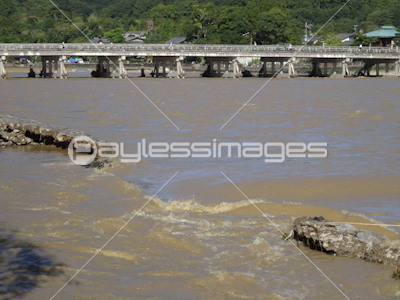 京都嵐山桂川の洪水災害 の写真素材 イラスト素材 アマナイメージズ